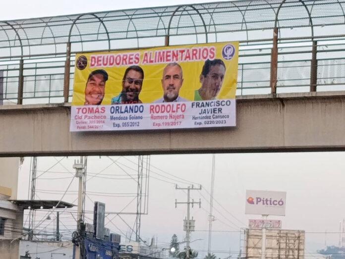 Las acciones se realizaron en puentes ubicados frente al PRI, ex IEEPO, DIF y Cinco Señores, donde se colocaron carteles con rostros y nombres de personas señaladas por incumplir con pensiones alimenticias.